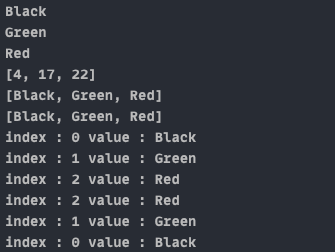 while (itr.hasNext()) System.out.println("index : " + itr.nextIndex() + " value : " + itr.next());