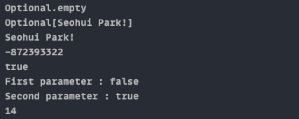 System.out.println("Second parameter : " + b.isPresent());